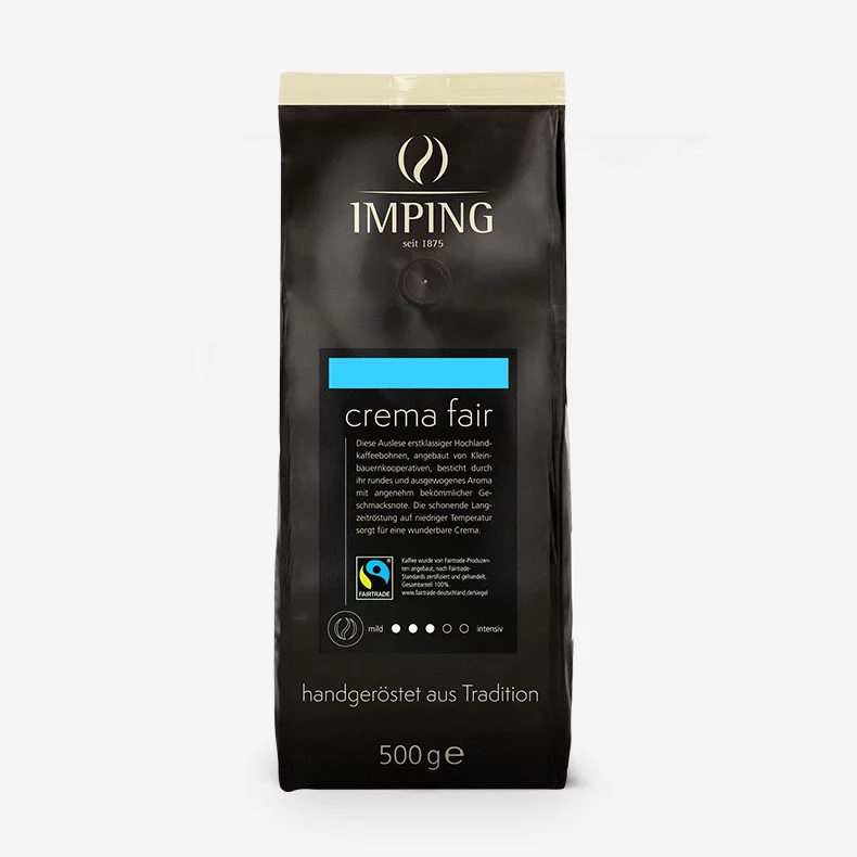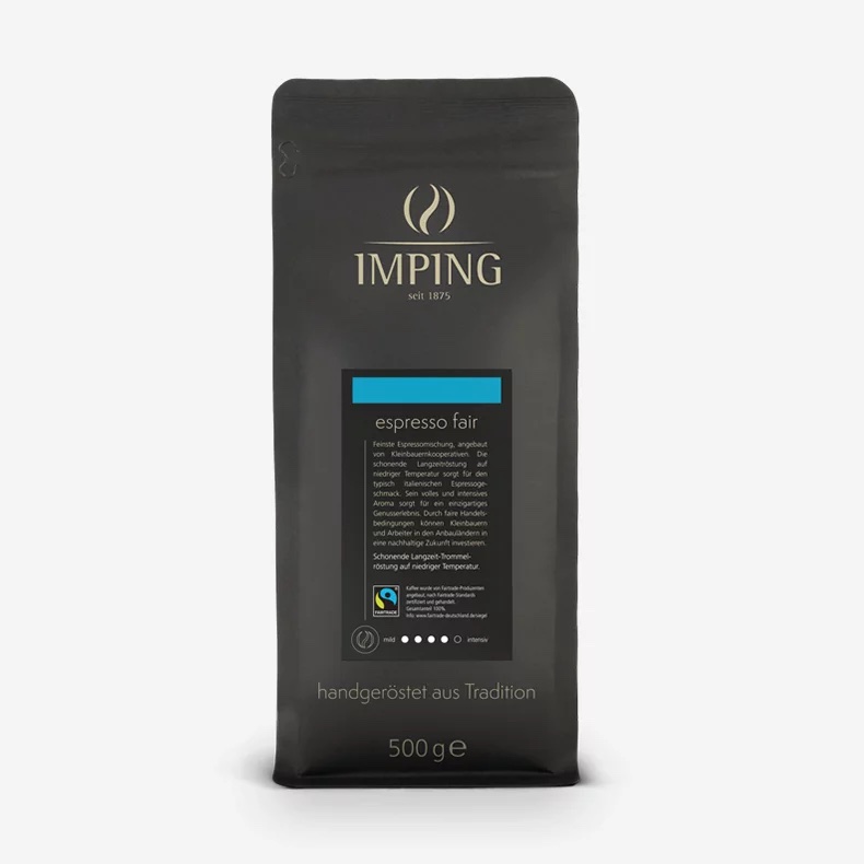 Der Imping Fairtrade Kaffee wird von Kleinbauernfamilien unter Ausschluss von Zwischenhändlern direkt aus den Erzeugerländern hergestellt. Durch den Verein TransFair e.V. wird ein Mindestpreis gesichert, der sogar die Invesition in Bildungs- und Gesundheitsprogramme ermöglicht. Bei FairTrade-Kaffee handelt es sich um besonders hochwertigen Kaffee, da dieser die Existenzgrundlage der Kleinbauern ist und sie ihn mit hohem Interesse pflegen.